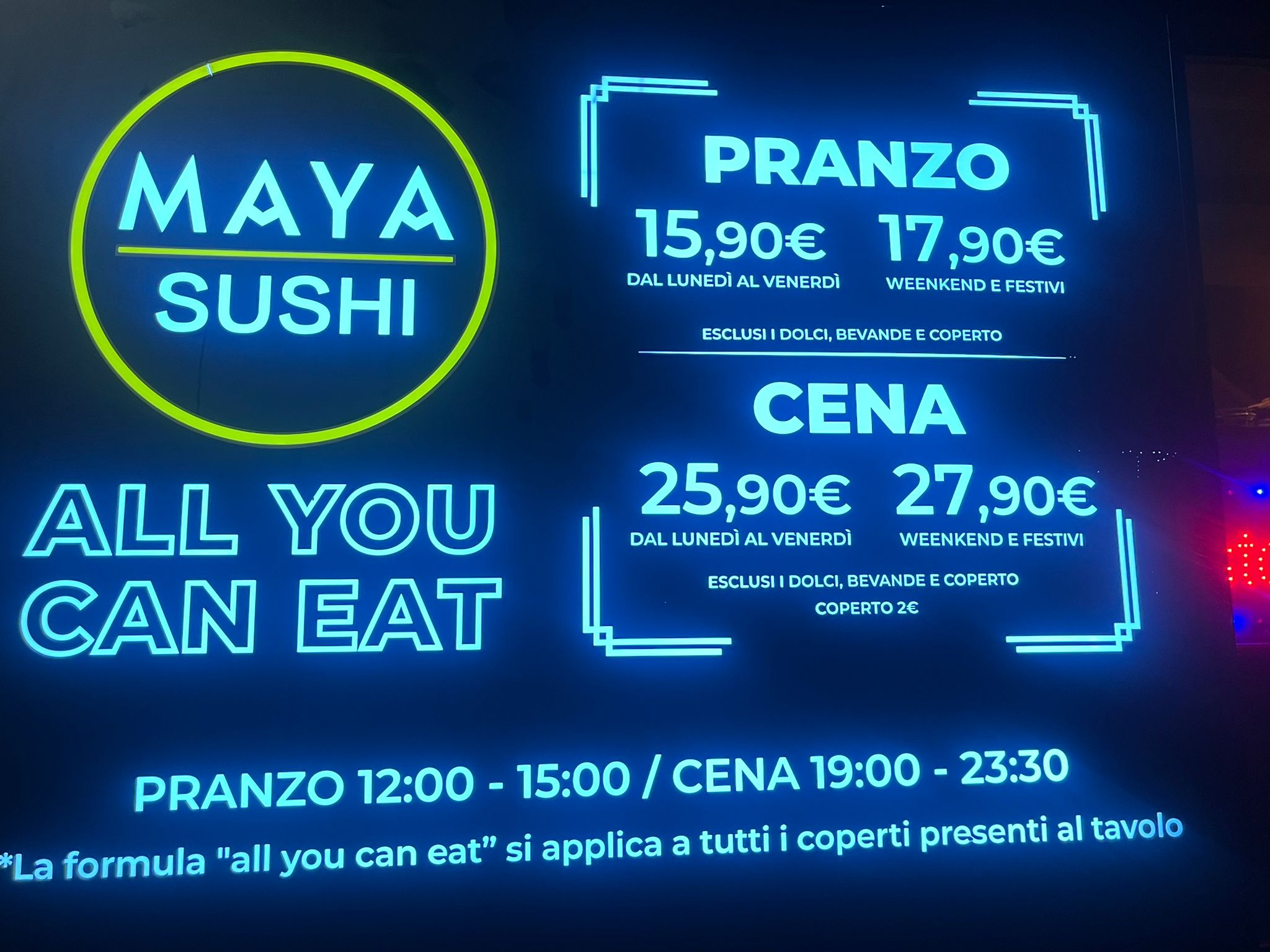 Siamo aperti a pranzo e a cena con la formula All You Can Eat, per permetterti di assaporare liberamente le nostre specialità di sushi, preparate con ingredienti freschi e di alta qualità.